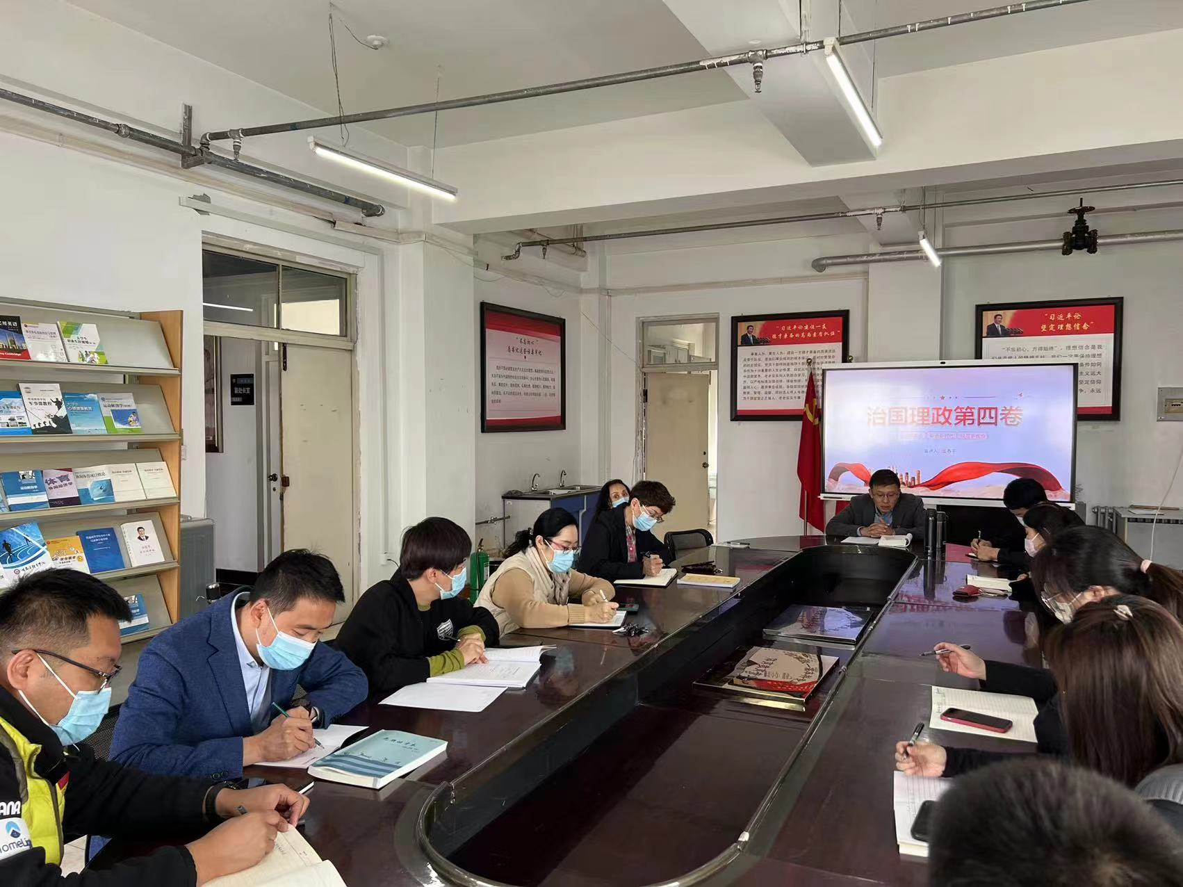 10月5日,机关党总支第六支部在尚德楼5楼会议室组织召开了《习近平谈治国理政》第四卷的宣讲活动。支部全体党员通过线上线下相结合的方式参加,会议由支部书记姜春平主持。